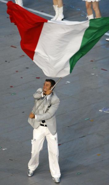 E che dire di Antonio Rossi, bello come un dio greco, portare la nostra bandiera con una sola mano, unico fra tutti gli alfieri?